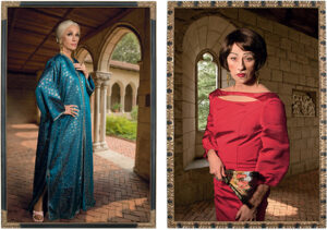 În Society Portraits aduce împreună aceste două realități: ipostazele de anonimitate pe care le putem avea ca simpli civili suprapuse peste coordonatele „standard” de a poza ca „lumea bună” sau ca celebritățile care ne ocupă spațiul mental și personal prin constanta comparație. Prin aceste lucrări, artista ne propune să ne reconsiderăm „măștile sociale” și să ne orientăm spre propria autenticitate.